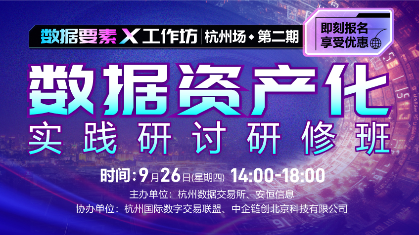 國家數(shù)據(jù)局提出將圍繞發(fā)揮數(shù)據(jù)要素乘數(shù)作用,與相關(guān)部門一道研究實施“數(shù)據(jù)要素 X”行動。為更好響應(yīng)國家宏觀部署,杭州數(shù)據(jù)交易所聯(lián)合安恒信息、杭州國際數(shù)字交易聯(lián)盟、中企鏈創(chuàng),共同舉辦“‘?dāng)?shù)據(jù)要素 X’工作坊杭州場第二期——數(shù)據(jù)資產(chǎn)化實踐研討研修班”。