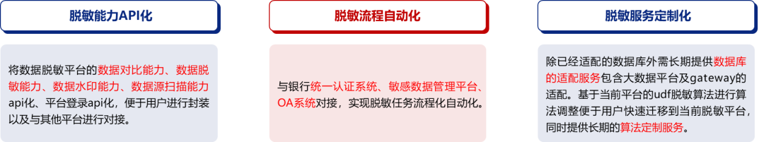 ■?工具能力靈活調(diào)用:具備標(biāo)準(zhǔn)化的數(shù)據(jù)脫敏、數(shù)據(jù)水印、數(shù)據(jù)溯源等能力的API接口,三方應(yīng)用或平臺(tái)可方便進(jìn)行對接整合,提升了產(chǎn)品的使用場景。