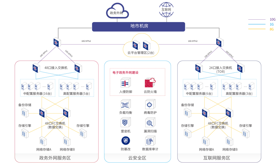 在目前已經(jīng)開始建設(shè)的兩期項目中,廣東省信息中心為廣東省10個地市單位(潮州市、韶關(guān)市、肇慶市、湛江市、茂名市、汕頭市、清遠元市、河源市、梅州市、云浮市)構(gòu)建了全市統(tǒng)—管理的支撐網(wǎng)上辦事大廳電子政務(wù)云計算平臺,實現(xiàn)政務(wù)云軟硬件的統(tǒng)—規(guī)劃、統(tǒng)一建設(shè)、統(tǒng)一應(yīng)用和統(tǒng)一管理,為這10個地市各部門提供計算資源、存儲資源、網(wǎng)絡(luò)資源、安全服務(wù)以及基礎(chǔ)軟件服務(wù)平臺等方面的支撐,為地市電子政務(wù)建設(shè)發(fā)展提供綠色、高效、安全、低成本、按需分配的云計算服務(wù)。各地市建立的電子政務(wù)云平臺將保障各地市網(wǎng)上辦事大廳、政務(wù)信息資源共享平臺等重要電子政務(wù)公共基礎(chǔ)設(shè)施和公共電子政務(wù)應(yīng)用系統(tǒng),同時為未來縣 (區(qū))、鎮(zhèn)(街)提供運行支撐環(huán)境做好準(zhǔn)備工作。