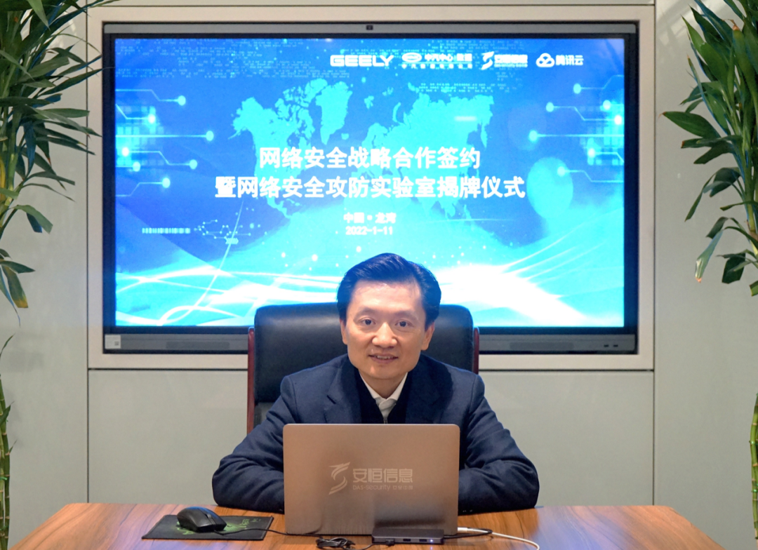 本次簽約和揭牌儀式以線上線下聯(lián)動(dòng)的形式舉行,吉利汽車研究院院長康國旺、副院長任向飛,騰訊智慧出行副總裁鐘學(xué)丹、騰訊安全策略發(fā)展中心總經(jīng)理呂一平,中汽數(shù)據(jù)總經(jīng)理馮屹,安恒信息董事長范淵、安恒信息總經(jīng)理吳卓群等共同出席和見證了簽約和揭牌儀式。