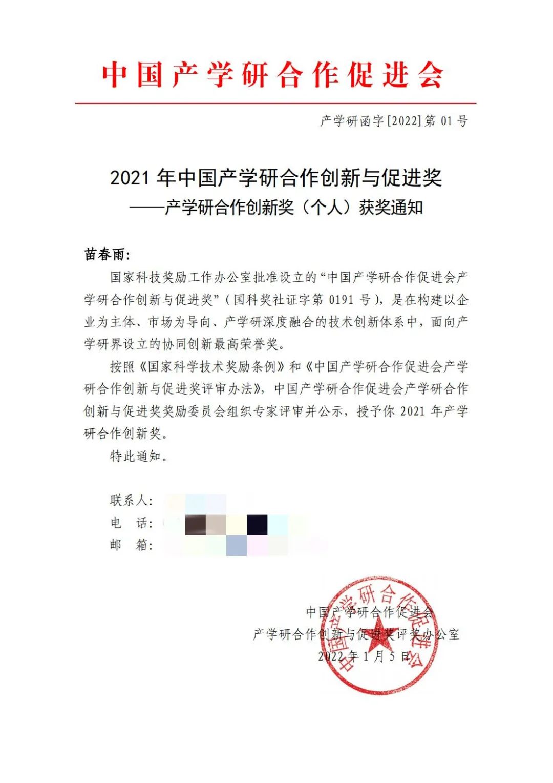 苗春雨榮獲產(chǎn)學(xué)研合作創(chuàng)新獎