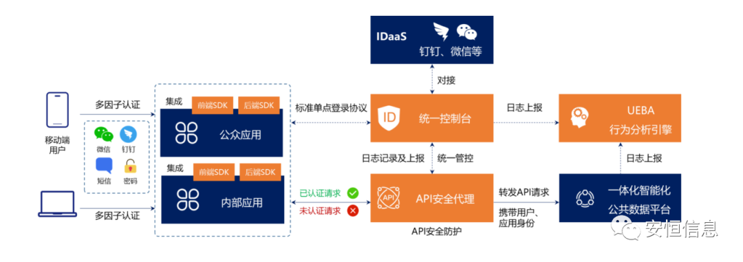 安恒信息零信任API安全管控解決方案依照多年以來在數(shù)據(jù)安全領(lǐng)域的積累,結(jié)合大數(shù)據(jù)安全分析能力基礎(chǔ),圍繞“零信任”核心理念,通過拉通終端、用戶、應(yīng)用、接口、數(shù)據(jù)身份,引入可信身份認(rèn)證、動態(tài)權(quán)限控制、數(shù)據(jù)脫敏、敏感數(shù)據(jù)識別等技術(shù),對API訪問請求實(shí)行持續(xù)信任評估和動態(tài)訪問控制。