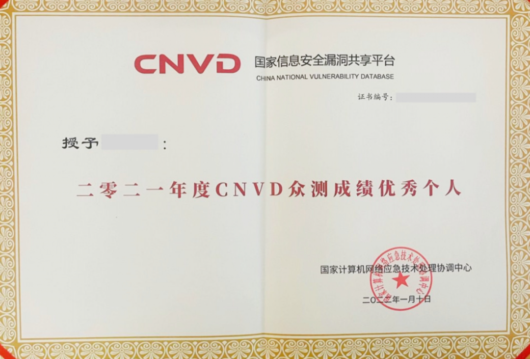 安恒信息作為CNVD支撐單位受邀參會,并被授予“2021年度原創(chuàng)漏洞發(fā)現(xiàn)貢獻單位”。其中自主發(fā)現(xiàn)的某漏洞獲評“CNVD平臺2021年度最具價值漏洞”。根據(jù)簽署的CNVD共建共享協(xié)議,認證安恒信息為“CNVD技術(shù)組支撐單位”稱號。同時,安恒信息研究院的研究員榮獲“2021年度CNVD眾測成績優(yōu)秀個人”。