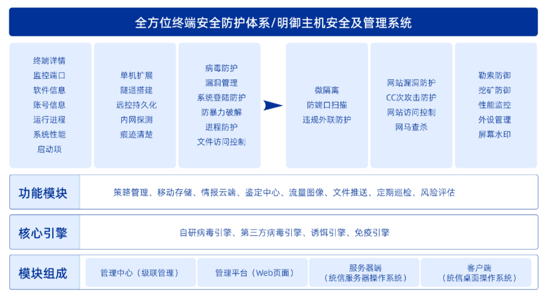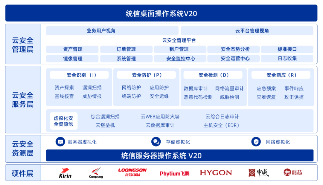 安恒信息對(duì)云計(jì)算進(jìn)行了持續(xù)多年的深入研究和風(fēng)險(xiǎn)分析,結(jié)合自身在安全領(lǐng)域的經(jīng)驗(yàn)及技術(shù)積累,基于統(tǒng)信操作系統(tǒng)的基礎(chǔ)底座,打造了專門針對(duì)云上安全的產(chǎn)品——天池云安全解決方案。