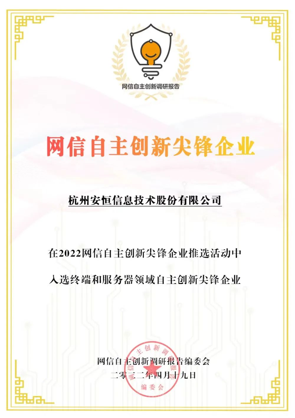 收獲編委會感謝信,安恒信息入選網(wǎng)信自主創(chuàng)新尖峰企業(yè)