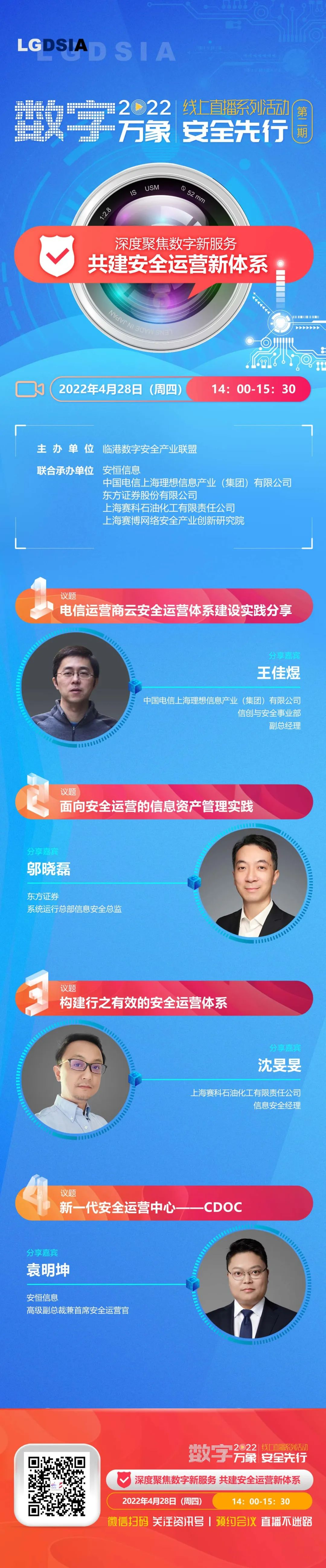 2022【數(shù)字萬象 安全先行】線上直播系列活動(dòng)第二場(chǎng)將于4月28日(周四)開啟,該場(chǎng)以“深度聚焦數(shù)字新服務(wù) 共建安全運(yùn)營(yíng)新體系”為主題,對(duì)大型數(shù)字場(chǎng)景與細(xì)分賽道下安全運(yùn)營(yíng)與服務(wù)的新場(chǎng)景案例、新技術(shù)應(yīng)用、新體系建設(shè)等各方面進(jìn)行豐富的探討,讓運(yùn)營(yíng)更高效,讓服務(wù)更全面,讓安全不設(shè)限。