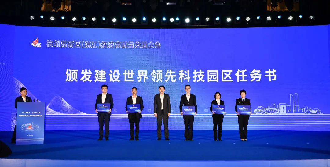 鄭迪發(fā)布《建設(shè)高能級戰(zhàn)略平臺 打造世界領(lǐng)先科技園區(qū)行動方案》及《杭州高新區(qū)(濱江)助企紓困穩(wěn)增長政策十二條》,為發(fā)改局、經(jīng)信局、科技局、商務(wù)局、市場監(jiān)管局頒發(fā)建設(shè)世界領(lǐng)先科技園區(qū)任務(wù)書。