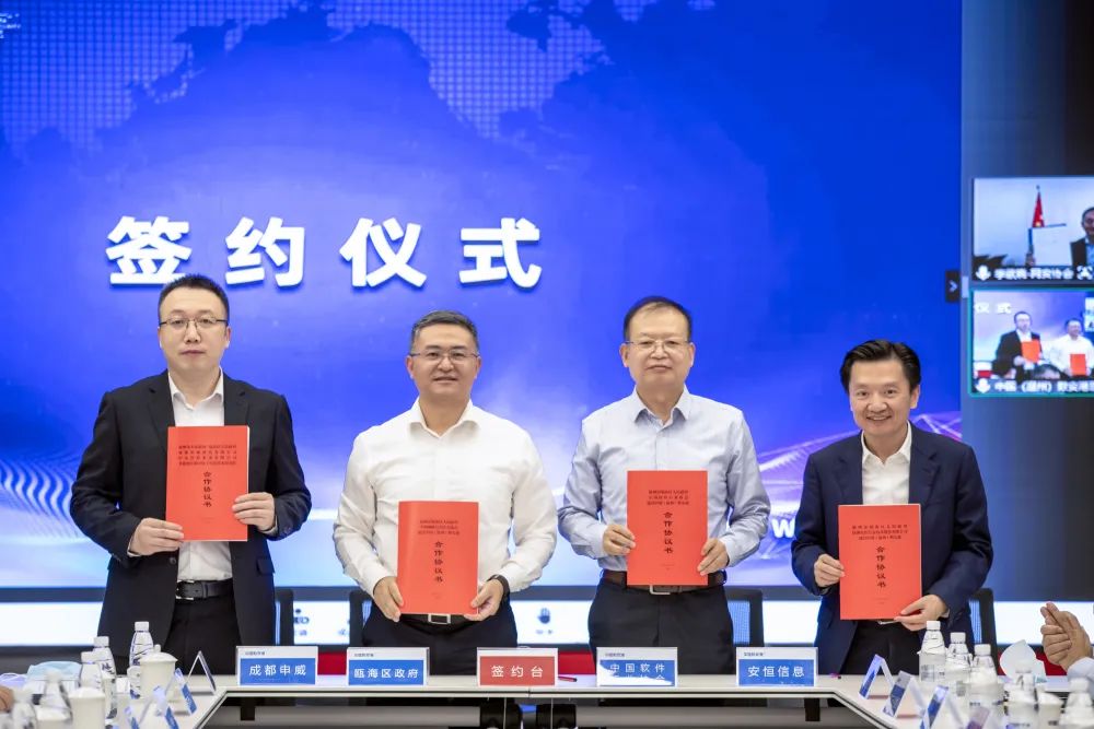 會(huì)上,溫州市甌海區(qū)政府與中國(guó)軟件行業(yè)協(xié)會(huì)、中國(guó)網(wǎng)絡(luò)空間安全協(xié)會(huì)、成都申威科技、安恒信息等四家組織單位簽署合作協(xié)議,就參與數(shù)安港建設(shè)和數(shù)據(jù)要素市場(chǎng)化配置改革達(dá)成戰(zhàn)略合作,安恒信息董事長(zhǎng)范淵參與本次簽約。