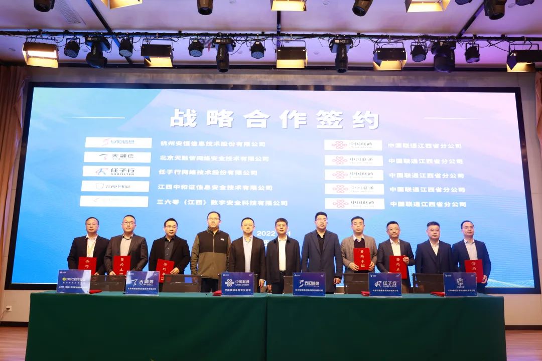 11月15日,中國(guó)聯(lián)合網(wǎng)絡(luò)通信有限公司江西省分公司(以下簡(jiǎn)稱(chēng)“江西聯(lián)通”)與安恒信息等5家網(wǎng)絡(luò)安全領(lǐng)域知名企業(yè)正式簽署戰(zhàn)略合作協(xié)議。江西聯(lián)通副總經(jīng)理李浩宇,工業(yè)互聯(lián)網(wǎng)研究院院長(zhǎng)萬(wàn)剛等聯(lián)通領(lǐng)導(dǎo),安恒信息副總裁盧小波,聯(lián)通集團(tuán)事業(yè)部總經(jīng)理柯瑋等出席簽約儀式。