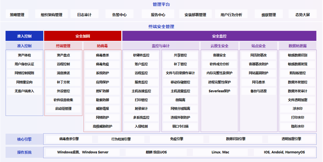 安恒終端安全管理系統(tǒng)(簡稱“安恒UES”)是安恒信息新推出的企業(yè)級終端安全一體化產(chǎn)品,集成了高性能資產(chǎn)管理、入侵威脅檢測、主機監(jiān)控與審計、數(shù)據(jù)防泄露、病毒查殺、勒索防御、動態(tài)防御引擎等功能模塊,全方位覆蓋政企類客戶的各種終端安全場景。