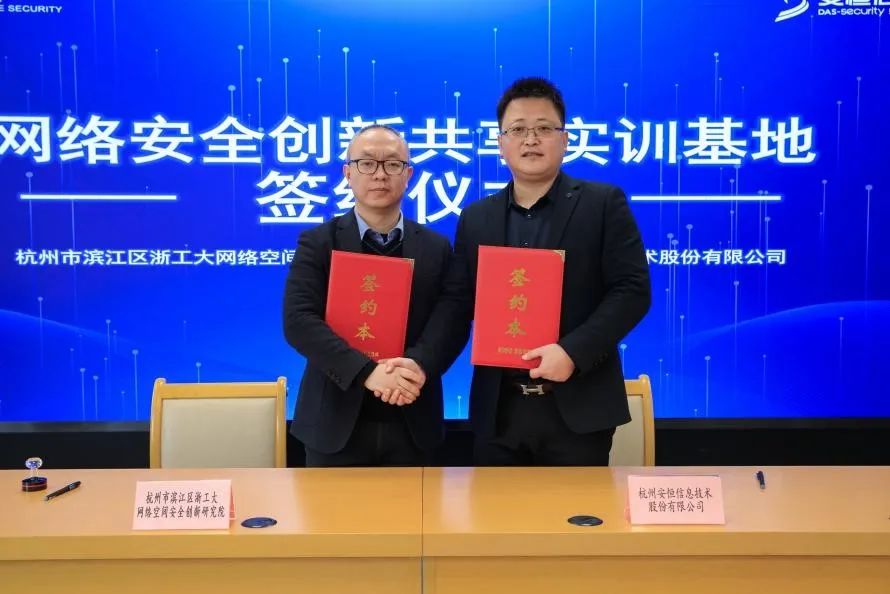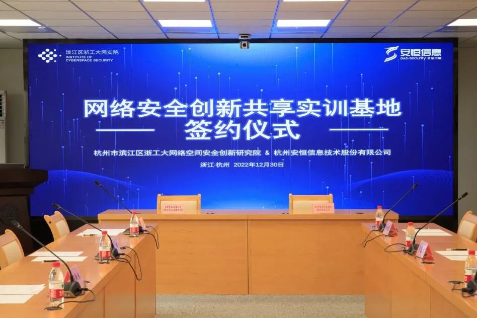 2022年12月30日,安恒信息與杭州市濱江區(qū)浙工大網(wǎng)絡(luò)空間安全創(chuàng)新研究院在浙江工業(yè)大學(xué)朝暉校區(qū)舉行共建“網(wǎng)絡(luò)安全創(chuàng)新共享實訓(xùn)基地”簽約儀式。