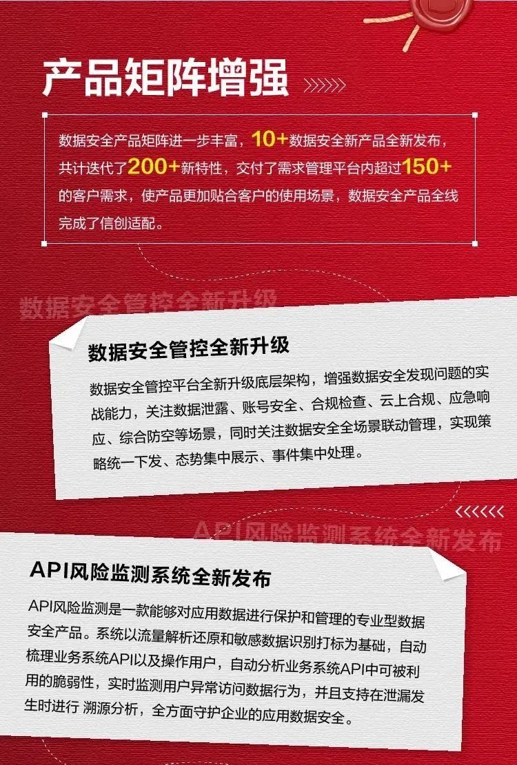 2022年,安恒信息數(shù)據(jù)安全全年累計發(fā)布新型產(chǎn)品10+,收獲獎項20+,服務(wù)客戶2000+!讓我們回溯這一年的春華秋實,盤點這一年的點點滴滴。