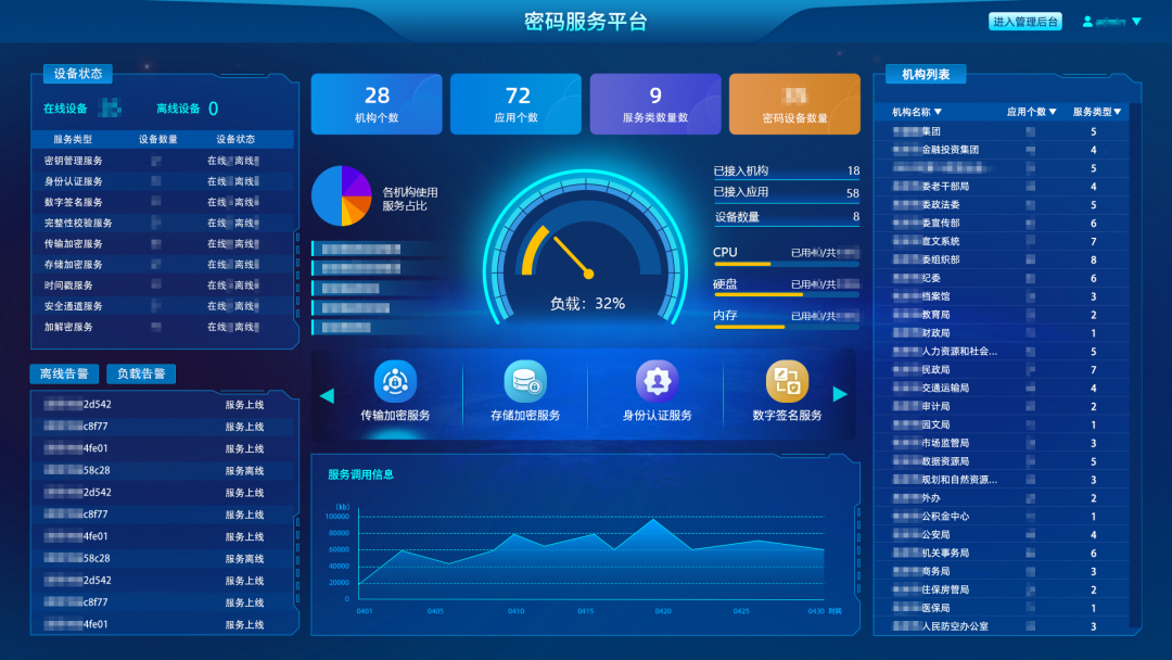 密碼監(jiān)管平臺上線,實(shí)現(xiàn)從服務(wù)到監(jiān)管的延伸,為主管單位提供密碼應(yīng)用監(jiān)管能力。