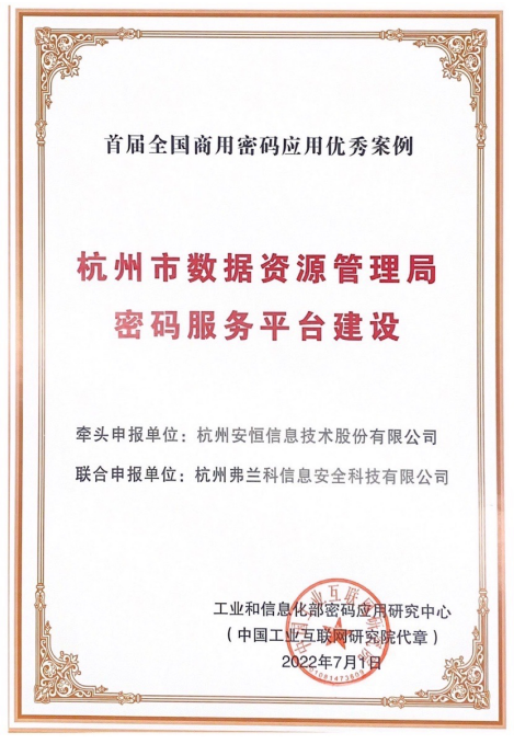 榮獲2022首屆全國商用密碼應(yīng)用優(yōu)秀案例