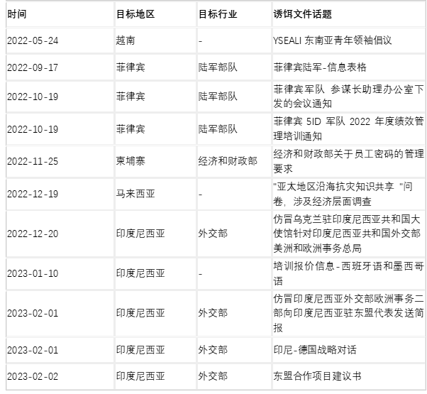2022年底,安恒信息獵影實驗室率先發(fā)現(xiàn)這一新APT組織,并將該組織命名為暗石(Saaiwc Group)。獵影實驗室在威脅狩獵中持續(xù)追蹤到這一組織針對東南亞多國財政、軍事、外交等部門的攻擊活動。