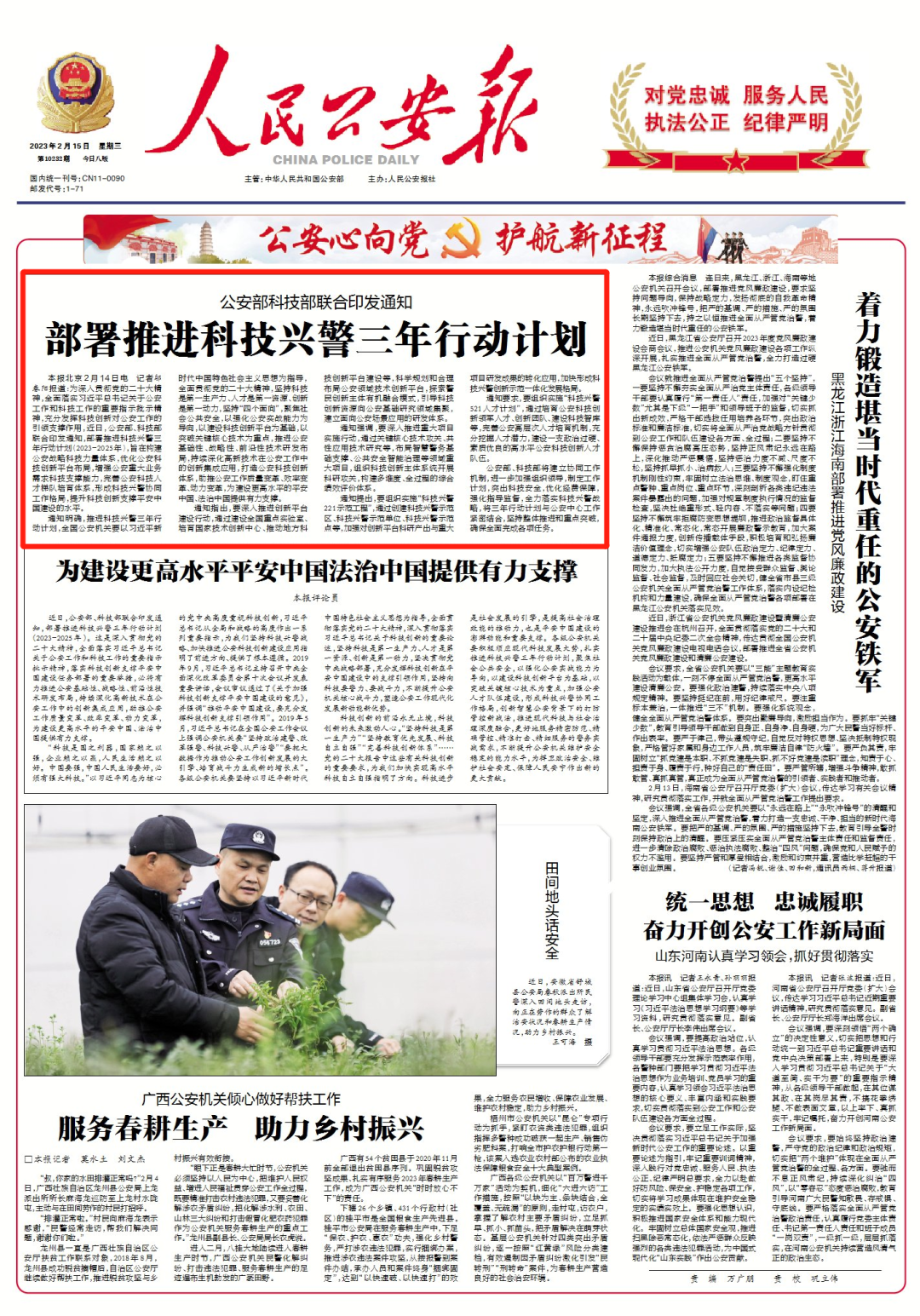 近日,公安部、科技部聯(lián)合印發(fā)通知,部署推進(jìn)科技興警三年行動(dòng)計(jì)劃(2023-2025年),旨在構(gòu)建公安戰(zhàn)略科技力量體系,優(yōu)化公安科技創(chuàng)新平臺(tái)布局,增強(qiáng)公安重大業(yè)務(wù)需求科技支撐能力,完善公安科技人才梯隊(duì)培育體系,形成科技興警協(xié)同工作格局,提升科技創(chuàng)新支撐平安中國(guó)建設(shè)的水平。