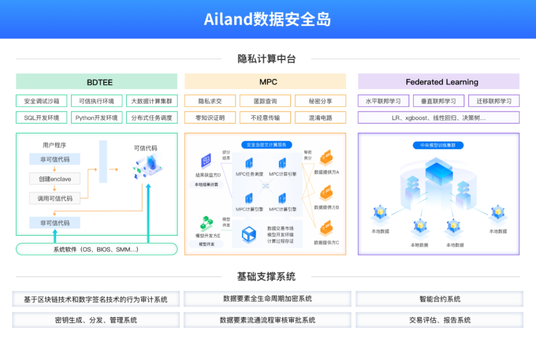 ●穩(wěn)慎有序,安全可控:堅持?jǐn)?shù)據(jù)安全與利用協(xié)調(diào)發(fā)展的原則。具備分布式隱私計算能力,“原始數(shù)據(jù)不出域、數(shù)據(jù)可用不可見”。實(shí)現(xiàn)網(wǎng)絡(luò)隔離、租戶隔離、開發(fā)與生產(chǎn)環(huán)境隔離,具備數(shù)據(jù)脫敏處理和數(shù)據(jù)出域?qū)徍说裙δ埽?strong>確保全流程操作可審計,數(shù)據(jù)可溯源。