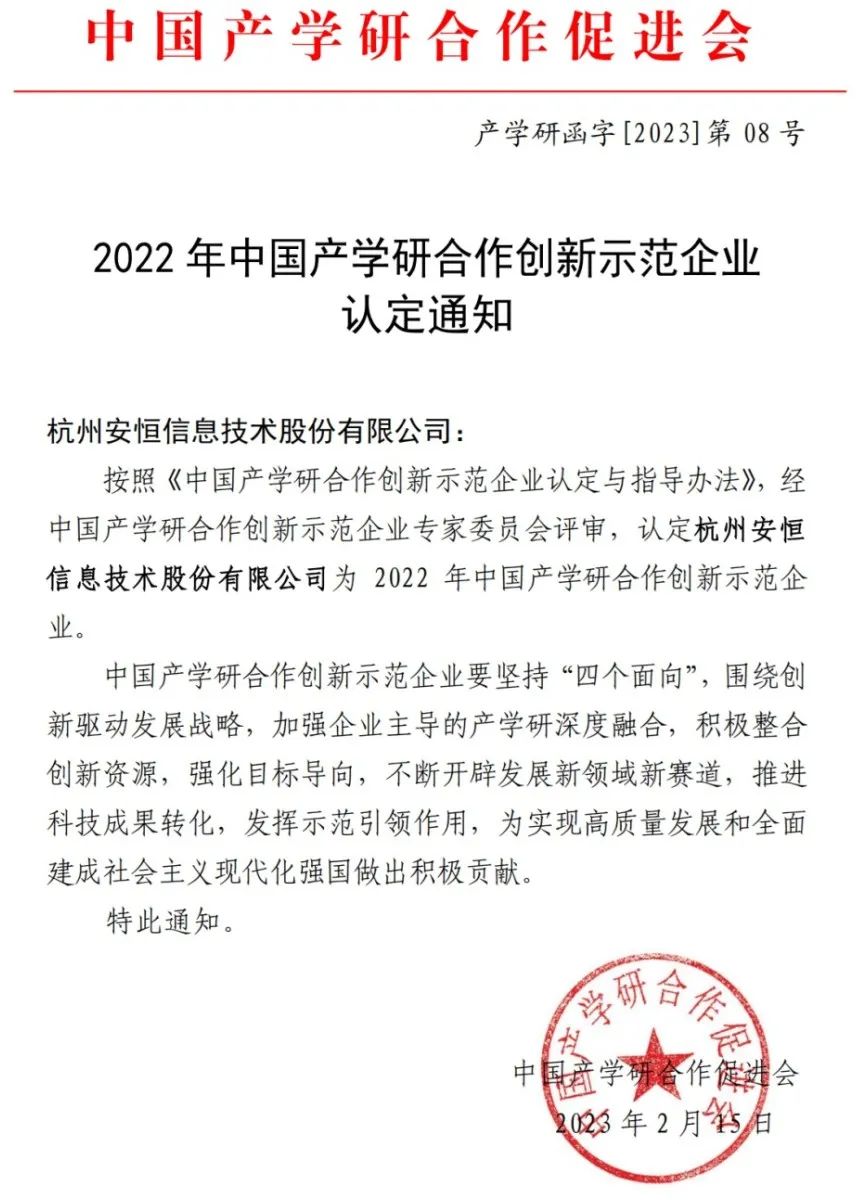 安恒信息入選“2022年中國(guó)產(chǎn)學(xué)研合作創(chuàng)新示范企業(yè)名單”