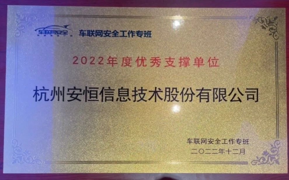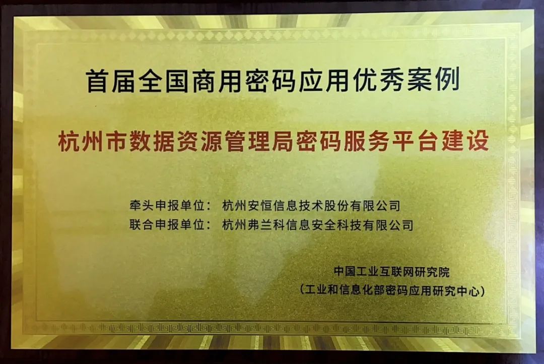其中,安恒信息與杭州弗蘭科信息安全科技有限公司共同申報(bào)的《杭州市數(shù)據(jù)資源管理局密碼服務(wù)平臺(tái)建設(shè)》獲評(píng)首屆全國(guó)商用密碼應(yīng)用優(yōu)秀案例,公司還獲得“車聯(lián)網(wǎng)專班優(yōu)秀支撐單位”榮譽(yù)。