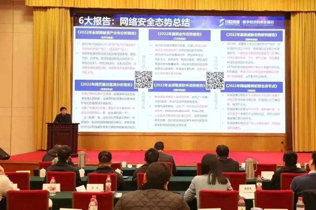 作為首次發(fā)布的兩項行業(yè)發(fā)布之一,安恒信息副總裁梁浩發(fā)布《2022-2023網(wǎng)絡安全綜合態(tài)勢觀察手冊》(以下簡稱“手冊”)?!妒謨浴坊诙嗄甑募夹g(shù)研究與數(shù)據(jù)積累,整合全球安全事件的多維度分析,從 APT態(tài)勢分析、勒索團伙、漏洞全年態(tài)勢、全球網(wǎng)絡資產(chǎn)分布分析、網(wǎng)頁篡改監(jiān)測分析、網(wǎng)絡賭博犯罪生態(tài)等方面全面了解 2022年網(wǎng)絡安全綜合態(tài)勢,并預測和研判 2023年潛在的網(wǎng)絡安全風險點,助力網(wǎng)絡安全從業(yè)者把握最新風險點和威脅趨勢。