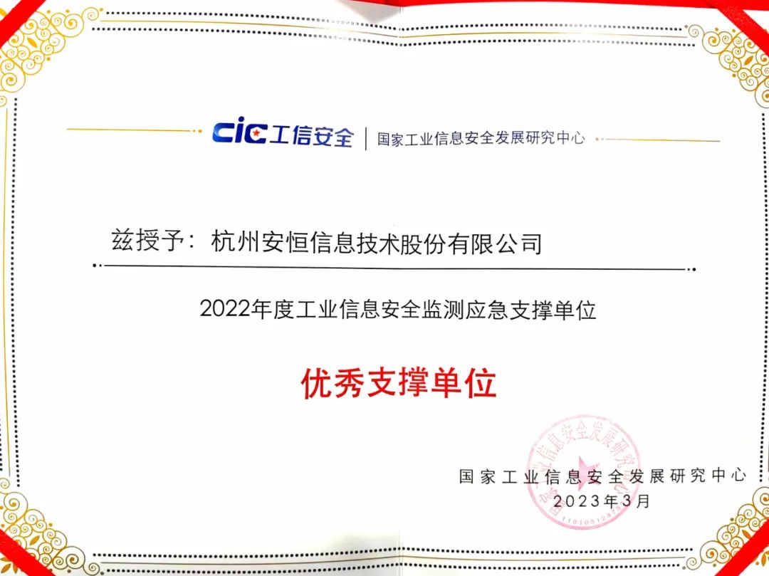 2022年度工業(yè)信息安全監(jiān)測應急優(yōu)秀支撐單位