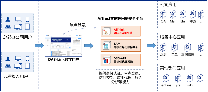 基于用戶(hù)在數(shù)字化轉(zhuǎn)型中現(xiàn)狀和安全需求,遵循零信任安全基本理念,逐步規(guī)劃實(shí)施零信任。用戶(hù)十分重視本次開(kāi)發(fā),要求無(wú)論全新建設(shè)或者遷移,都需要基于零信任進(jìn)行整體安全架構(gòu)設(shè)計(jì)和規(guī)劃,并盡量減少對(duì)員工工作的影響。