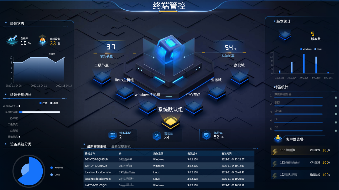 主機監(jiān)控與審計能力:以主機管理為核心,形成集主機監(jiān)控與審計、補丁管理、運維管理等為一體的主機審計系統(tǒng),為企業(yè)管理者提供內網主機統(tǒng)一管理解決方案,最大程度杜絕終端違規(guī)操作,幫助使用者創(chuàng)建一個安全、可靠、穩(wěn)定、合規(guī)的內網辦公環(huán)境。