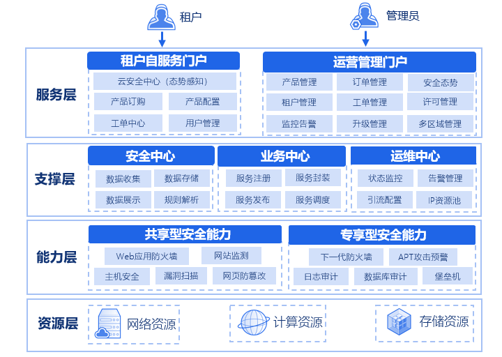 基于在云計算領域多年的深入研究和行業(yè)特性分析,以及對網絡安全領域的技術經驗積累,安恒信息推出“安恒云”云計算及安全管理平臺(簡稱“安恒云”)。安恒云集多云安全能力中臺、多云安全運營中心和多云資產安全運維于一體,針對多樣化的云計算場景,通過多云安全管理平臺統(tǒng)一接管各類云平臺,實現(xiàn)多云資產的全生命周期管理。同時,多云安全中心融合了安恒云安全能力及第三方合作伙伴安全能力,實現(xiàn)安全能力資源化,安全資源服務化,多云安全中心為各類云平臺量身打造整體的綜合性安全能力,解決用戶上云過程中面臨的安全風險和難題,提供一站式綜合云安全解決方案,為云上業(yè)務保駕護航。