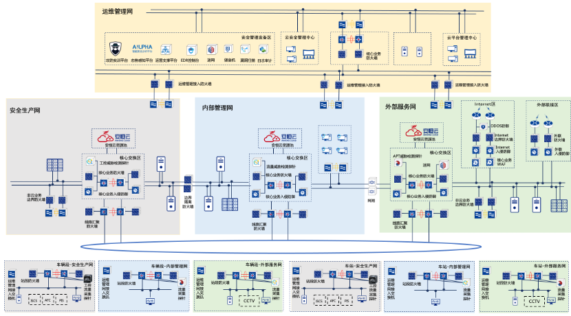 安恒云智慧城軌云安全解決方案充分結(jié)合云計算特點和城軌云專屬業(yè)務(wù)要求,提供了整體的云計算安全措施。方案以等保2.0“一個中心、三重防護”的理念為基礎(chǔ),結(jié)合《智慧城市軌道交通信息技術(shù)架構(gòu)及網(wǎng)絡(luò)安全規(guī)范》及《城市軌道交通云平臺網(wǎng)絡(luò)安全技術(shù)規(guī)范》,基于城市軌道交通云平臺網(wǎng)絡(luò)安全的總體架構(gòu)、安全防護縱深體系、各個環(huán)節(jié)的安全技術(shù)要求、云上應(yīng)用系統(tǒng)的安全機制及安全管理等要求,按照安全生產(chǎn)網(wǎng)、內(nèi)部管理網(wǎng)、外部服務(wù)網(wǎng)及運維管理網(wǎng)的整體架構(gòu),統(tǒng)籌關(guān)聯(lián)安恒信息網(wǎng)絡(luò)安全、數(shù)據(jù)安全、云安全、物聯(lián)網(wǎng)安全、工控安全及安全服務(wù)等強勢安全能力,提供全面覆蓋城軌云整體安全防護的安全能力。