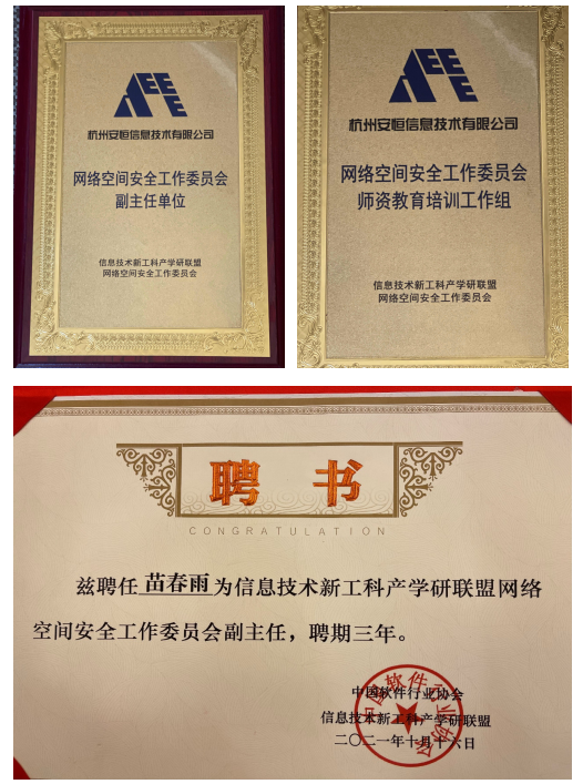 安恒信息被授予網(wǎng)安工委會副主任單位 苗春雨獲聘副主任委員