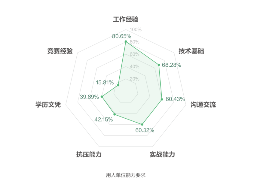隨著網(wǎng)絡(luò)安全挑戰(zhàn)復(fù)雜程度和演變速度不斷提高,用人單位對(duì)于網(wǎng)安人才的能力要求也在不斷提高。據(jù)調(diào)查樣本數(shù)據(jù),網(wǎng)安從業(yè)人員認(rèn)為用人單位招聘時(shí)傾向于尋找工作經(jīng)驗(yàn)豐富、技術(shù)基礎(chǔ)扎實(shí)、實(shí)戰(zhàn)能力和溝通交流能力強(qiáng),同時(shí)具備一定的抗壓能力的網(wǎng)安人才,學(xué)歷文憑和競(jìng)賽經(jīng)驗(yàn)相對(duì)而言并非用人單位特別注重的能力特質(zhì)。