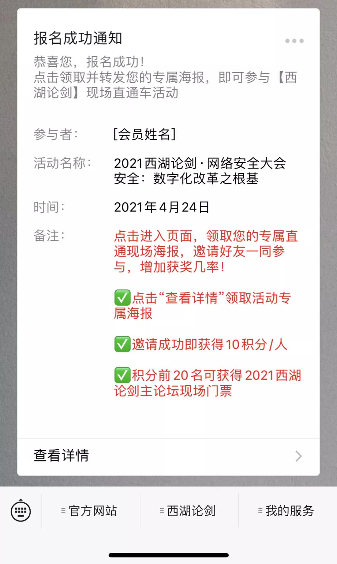 先報名,再邀請好友(邀請越多 積分越多),積分高者,贏得最終直通西湖論劍主論壇現(xiàn)場名額。
