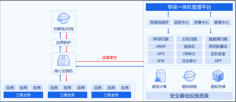 等保建設(shè)涉及的安全產(chǎn)品種類繁多,一方面設(shè)備采購成本居高不下,需要較大的資金投入,另一方面每種設(shè)備的工作原理和部署方式差異較大,從采購到部署上線少說也要半年左右的周期,其中的設(shè)備成本、時間成本以及協(xié)調(diào)溝通成本將成為中小型客戶不能承受之重。
