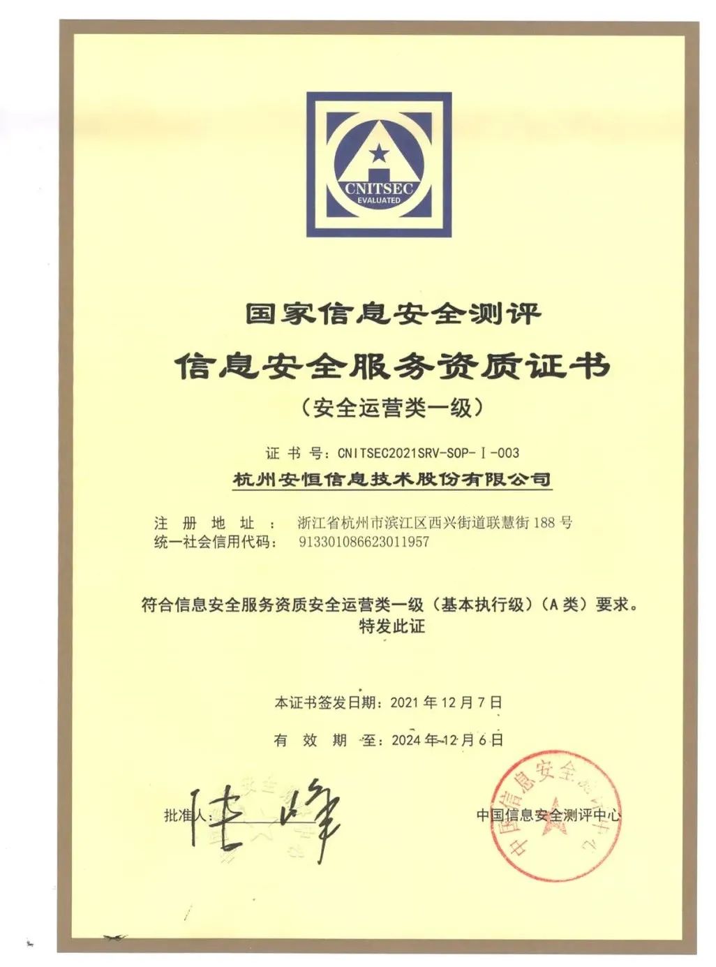 官宣|安恒信息成為首批國家級安全運營類一級網(wǎng)絡(luò)安全企業(yè)