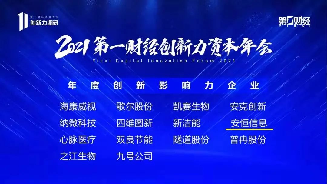 12月23日,第一財(cái)經(jīng)在上海舉辦“2021年第一財(cái)經(jīng)創(chuàng)新力資本年會”,安恒信息受邀參與本次會議,與現(xiàn)場的權(quán)威專家學(xué)者、知名投資人、龍頭企業(yè)代表一起,共同分享創(chuàng)新感悟與年度觀察,探討創(chuàng)新驅(qū)動與產(chǎn)業(yè)升級的前瞻思考。會議上公布了第一財(cái)經(jīng)創(chuàng)新力調(diào)研結(jié)果,安恒信息斬獲“2021年度創(chuàng)新影響力企業(yè)”榮譽(yù)。
