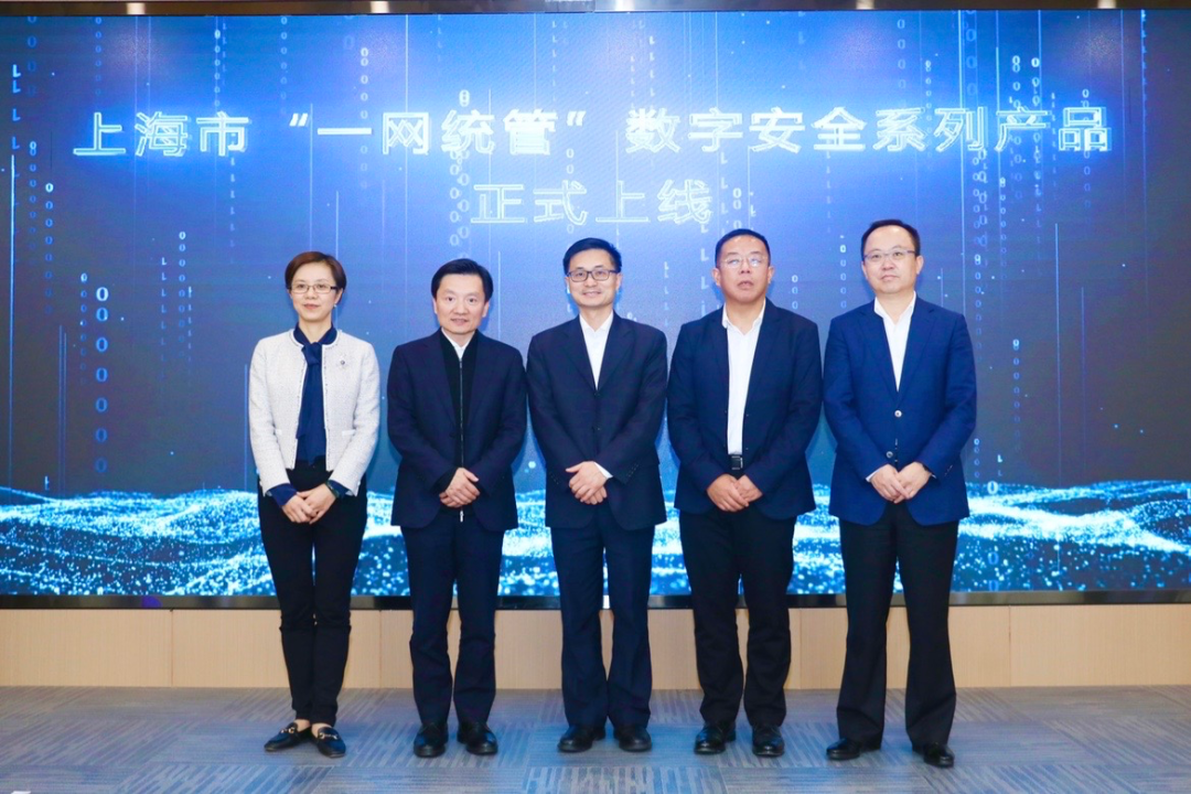 現(xiàn)場(chǎng),“一網(wǎng)統(tǒng)管”數(shù)字安全系列產(chǎn)品由上海市應(yīng)急管理局指揮中心主任、上海市城運(yùn)中心協(xié)調(diào)組組長(zhǎng)蔣學(xué)軍、安恒信息董事長(zhǎng)范淵、中電科數(shù)智科技有限公司總經(jīng)理丁湧、上海聯(lián)通智慧城市研究院院長(zhǎng)陳燕芬、上海市大數(shù)據(jù)股份有限公司總裁劉九評(píng)共同推桿發(fā)布。