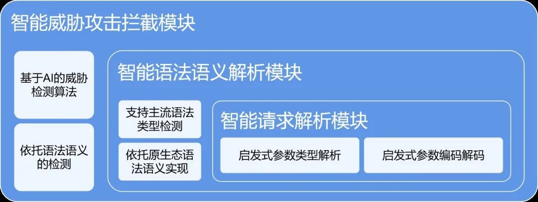 3)智能威脅攻擊攔截模塊:通過(guò)基于A(yíng)I的威脅檢測(cè)算法,提高語(yǔ)法語(yǔ)義的準(zhǔn)確度和攔截率