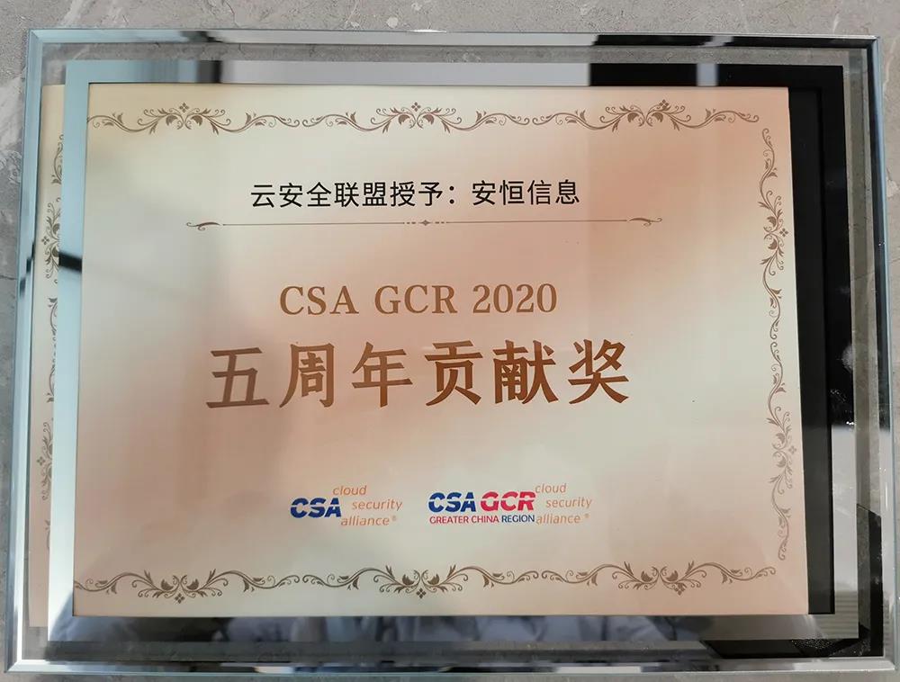 安恒信息作為首批加入CSA聯(lián)盟的成員單位,參與協(xié)辦本次大會(huì),并獲得云安全聯(lián)盟大中華區(qū)頒發(fā)的“CSA GCR 五周年貢獻(xiàn)獎(jiǎng)”、“CSA 2020安全金盾獎(jiǎng)”兩項(xiàng)殊榮。