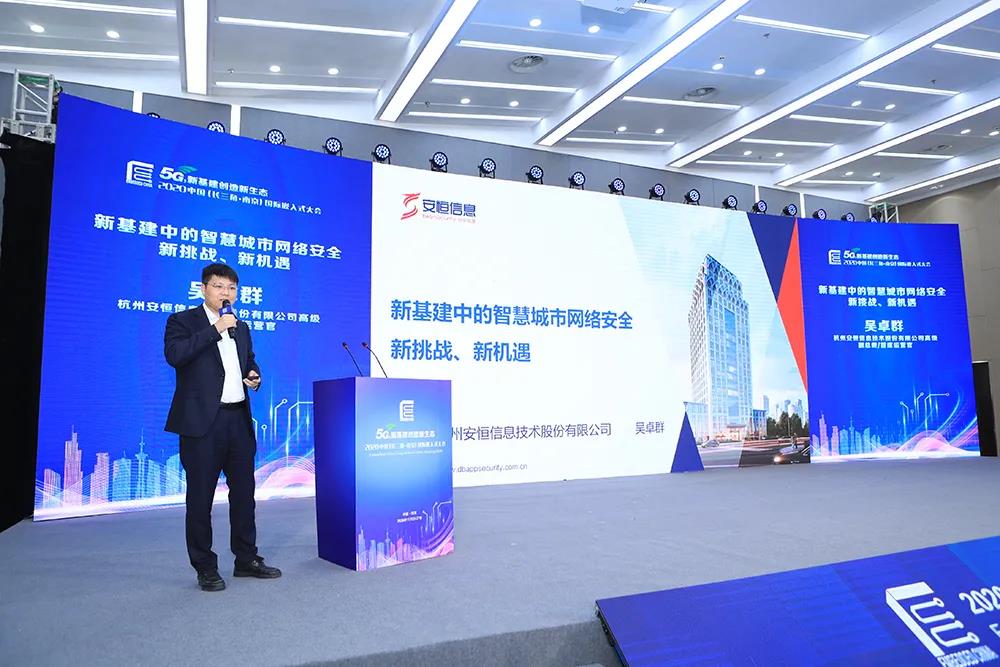 安恒信息高級(jí)副總裁、首席運(yùn)營(yíng)官吳卓群在大會(huì)上發(fā)表了《新基建中的智慧城市網(wǎng)絡(luò)安全新挑戰(zhàn)、新機(jī)遇》主題演講,就“新基建”時(shí)代的智慧城市建設(shè)提出網(wǎng)絡(luò)安全底座“八大基石”。