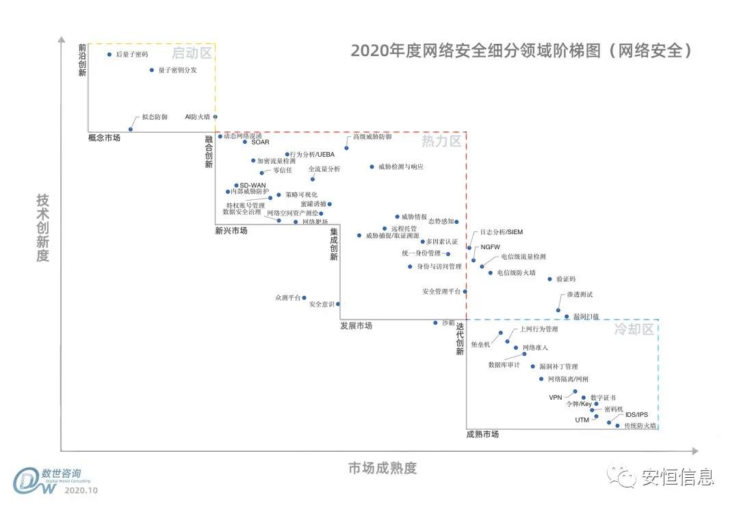 國(guó)內(nèi)數(shù)字化領(lǐng)域第三方調(diào)研機(jī)構(gòu)數(shù)世咨詢于近日正式推出網(wǎng)絡(luò)安全成熟度階梯(網(wǎng)絡(luò)安全),并從技術(shù)創(chuàng)新度與市場(chǎng)成熟度兩大軸向進(jìn)行排列。