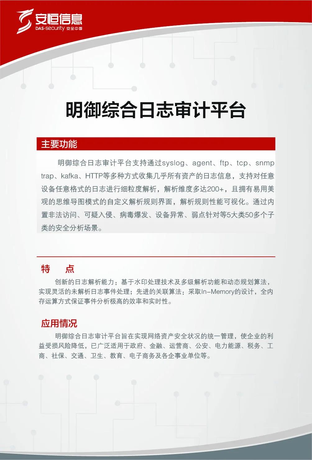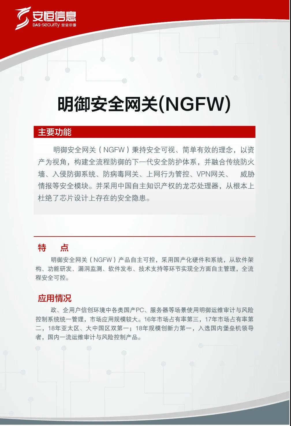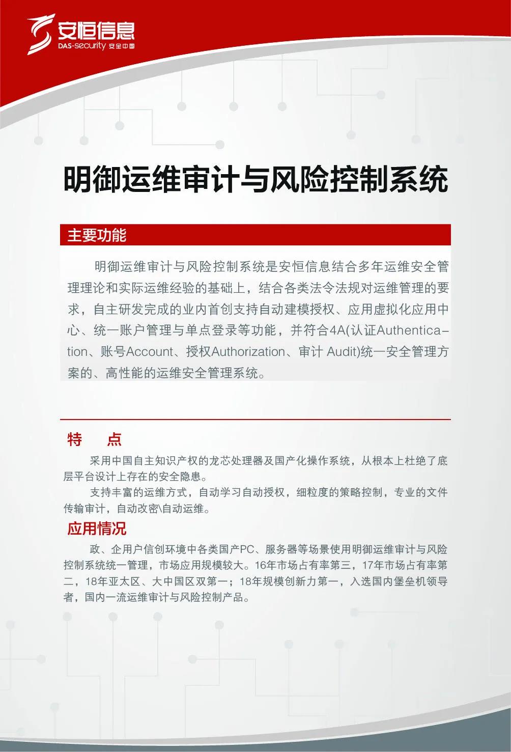 安恒信息高度重視信息技術(shù)應(yīng)用創(chuàng)新的實(shí)踐,2015年即已開展國產(chǎn)化硬件適配工作,并且已在部分客戶中成功測試及應(yīng)用。2019年12月24日龍芯中科“新時(shí)代芯生態(tài)”2019產(chǎn)品發(fā)布暨用戶大會在北京舉辦,作為龍芯中科重要的產(chǎn)業(yè)化合作伙伴,安恒信息發(fā)布了基于龍芯3A4000/3B4000及國產(chǎn)操作系統(tǒng)架構(gòu)的兩款安全產(chǎn)品。