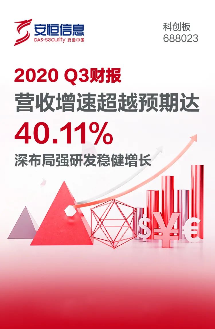 10月27日,安恒信息發(fā)布三季報。報告期內(nèi),公司持續(xù)穩(wěn)健發(fā)展,業(yè)務(wù)市場不斷拓展,整體經(jīng)營情況良好。2020年1-9月,公司實現(xiàn)營業(yè)收入66020.92萬元,較上年同期增長40.11%,其中,第三季度(7-9月)營業(yè)收入較上年同期增長64.95%,超越預(yù)期,整體增速再次領(lǐng)先行業(yè)。