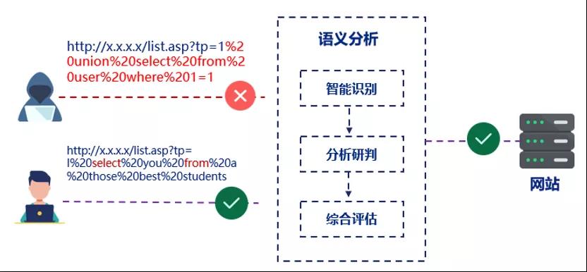 語義分析引擎采用智能識別、分析研判、綜合評估相結合的方式對攻擊行為進行檢測、防御。顯著提高0day檢出率,降低誤報率、漏報率。