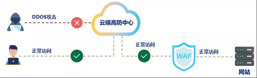 本地WAF與云端抗DDoS高防中心進行聯(lián)動,當出現(xiàn)大規(guī)模DDoS攻擊時,實現(xiàn)一鍵聯(lián)動防護,可提供1T的云端抗DDoS能力。