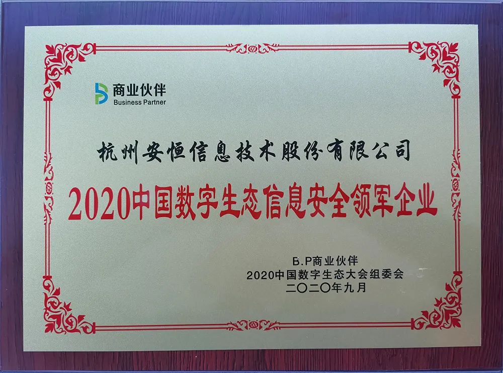 安恒信息榮獲“2020中國數(shù)字生態(tài)信息安全領(lǐng)軍企業(yè)”稱號