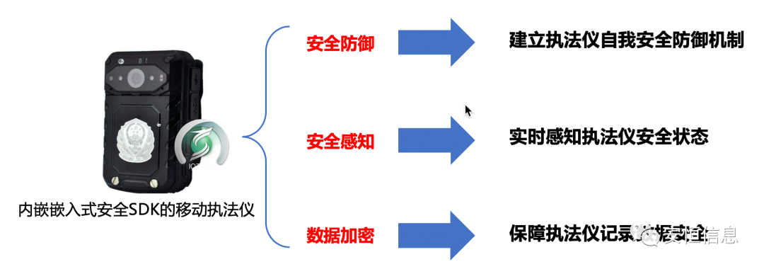 安恒信息基于上述場(chǎng)景需求,研發(fā)了國(guó)內(nèi)首個(gè)基于嵌入式安全SDK的5G移動(dòng)執(zhí)法儀安全防護(hù)方案,可以有效解決執(zhí)法儀終端缺少安全防護(hù)能力、敏感數(shù)據(jù)易被截獲、劫持的安全問(wèn)題。本方案涉及的相關(guān)技術(shù)具有自主知識(shí)產(chǎn)權(quán),在項(xiàng)目方案設(shè)計(jì)上具有一定的創(chuàng)新性和前瞻性,可以滿足了現(xiàn)有5G移動(dòng)執(zhí)法儀場(chǎng)景的實(shí)際安全需求,獲得大賽評(píng)委一直認(rèn)可。