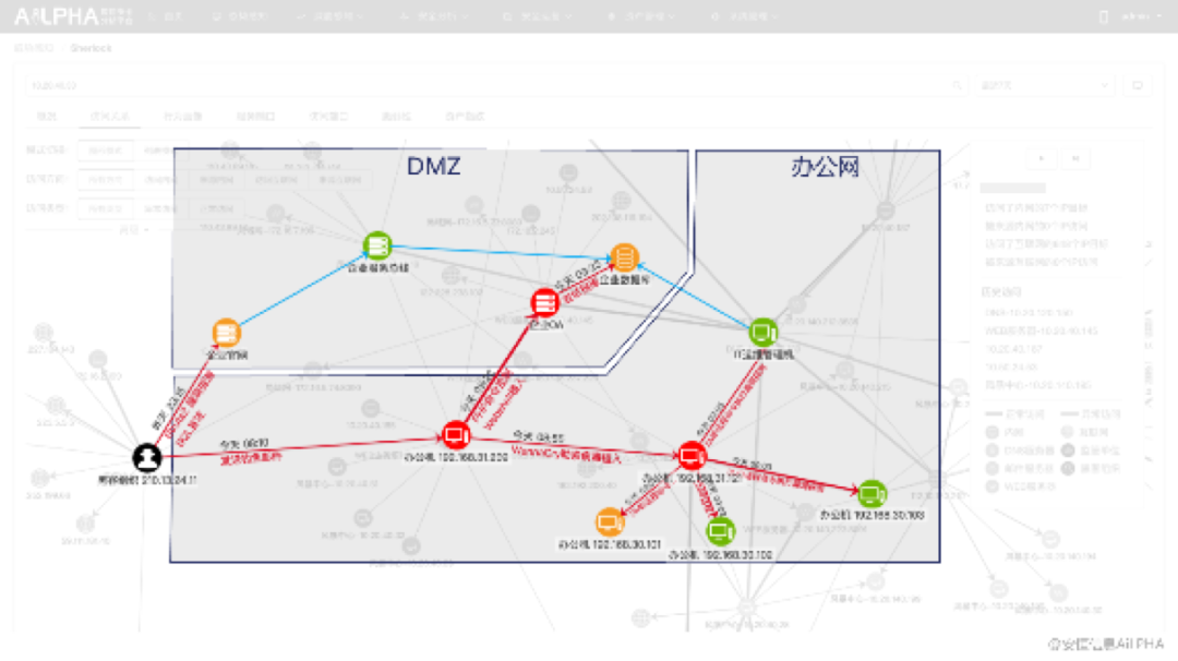 具備極致的安全可視化能力,利用全流量數(shù)據(jù)構(gòu)建訪問/攻擊的復(fù)雜關(guān)系網(wǎng),動(dòng)動(dòng)鼠標(biāo),就可高效完成事件溯源、攻擊影響范圍分析……