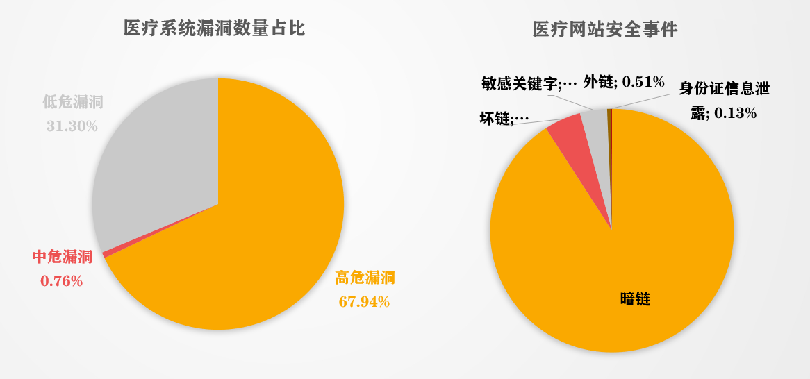 疫情期間,安恒信息風暴中心監(jiān)測發(fā)現(xiàn)在1500余家醫(yī)療網絡系統(tǒng)中,存在網絡安全風險漏洞約750余個,其中高危漏洞占比最高,約67.94%;其次是低危漏洞,占比約31.30%;中危漏洞占比約0.76%。
