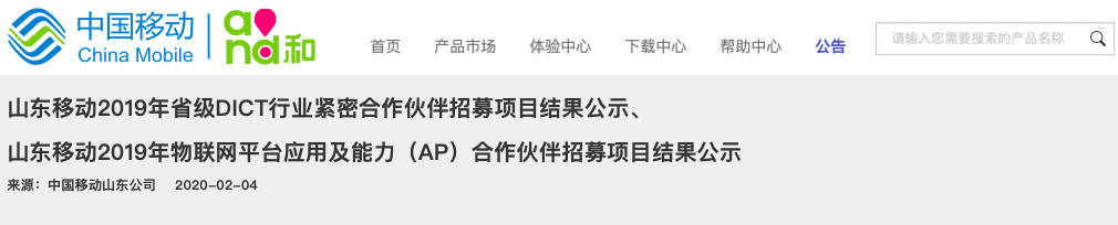 安恒信息成功入選山東移動2019年物聯(lián)網平臺應用及能力(AP)合作伙伴