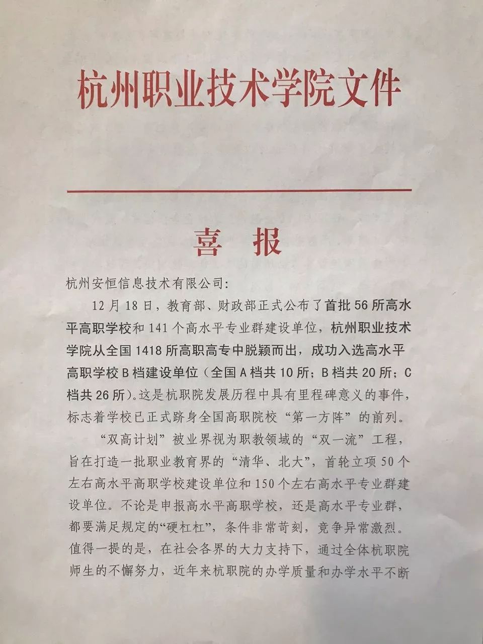 持續(xù)發(fā)力產(chǎn)學(xué)研合作,助力杭州職業(yè)技術(shù)學(xué)院入選“雙高計(jì)劃”